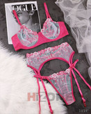ست لباس زیر و بند جوراب مدل ژاسمین (سرخابی)